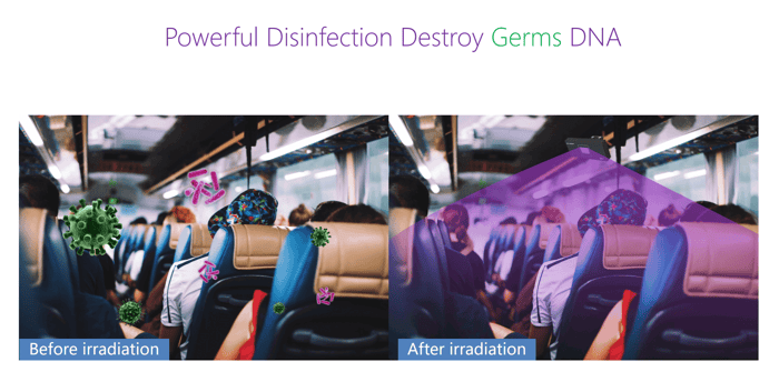 UVC light inactivates airborne pathogens primarily by damaging their genetic material so they can no longer replicate. When microbes suspended in air pass through UVC radiation, photons are absorbed by nucleic acids (DNA or RNA) and proteins.