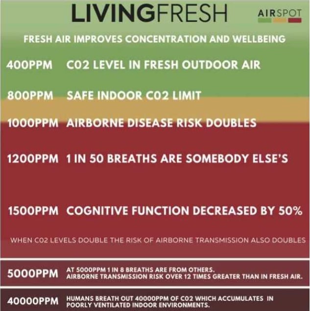 Poor ventilation allows infectious aerosols to linger, putting everyone at risk—especially in schools, offices, public transport, and healthcare settings. Elevated CO₂ levels—above 800 ppm—are a proven indicator of poor indoor air quality and a practical proxy for infection risk.