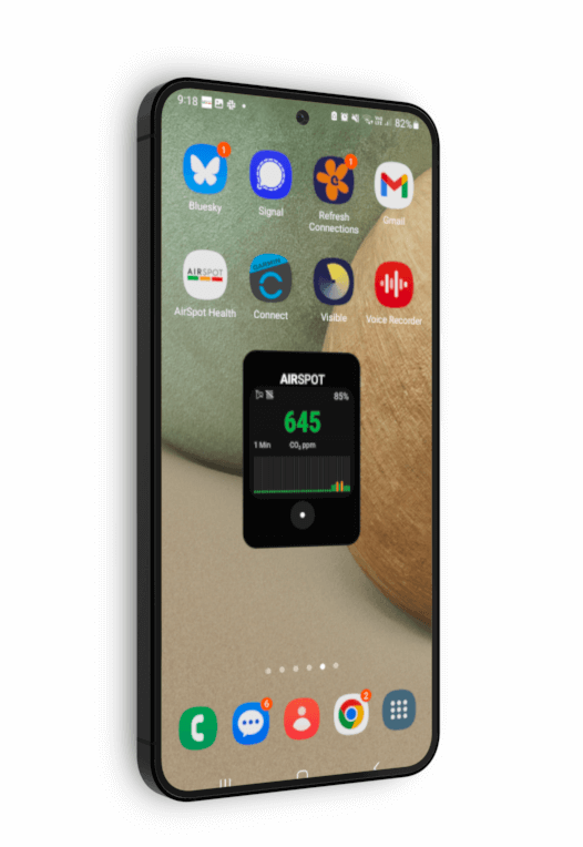 Hold down on the screen > Click Widgets > Select AirSpot Health